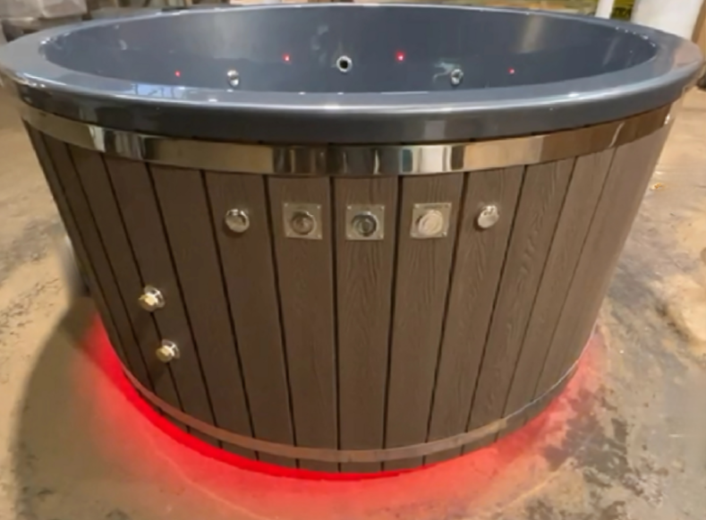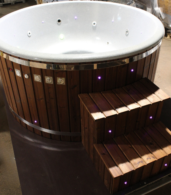 Enjoy a truly effortless hot tub experience with our round fiberglass hot tub, featuring a powerful integrated wood-fired heater. Designed for those who value both comfort and simplicity, this model brings warmth, style, and durability together in one compact package.