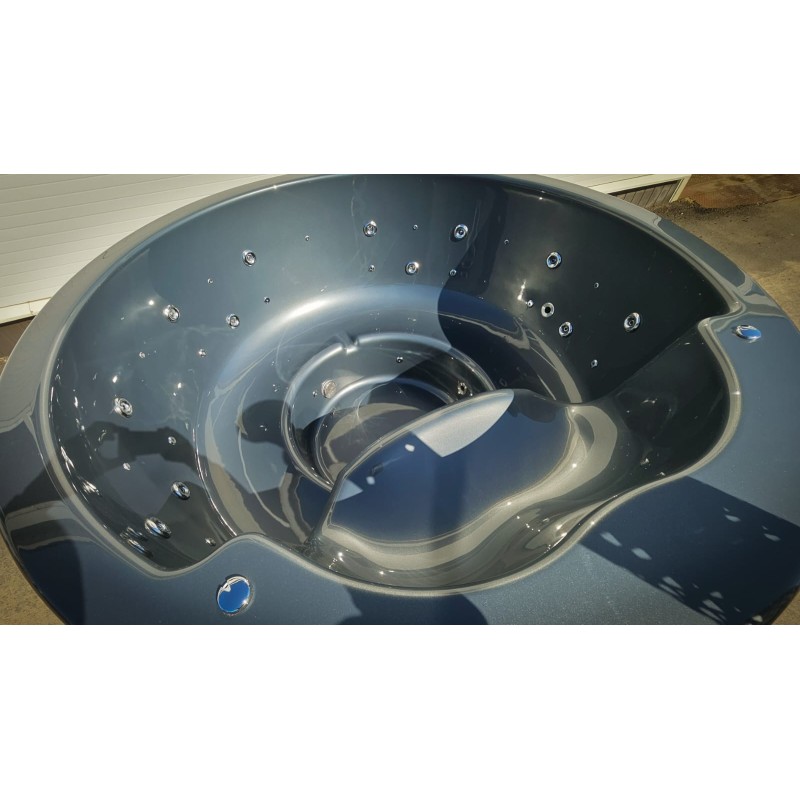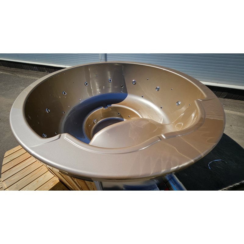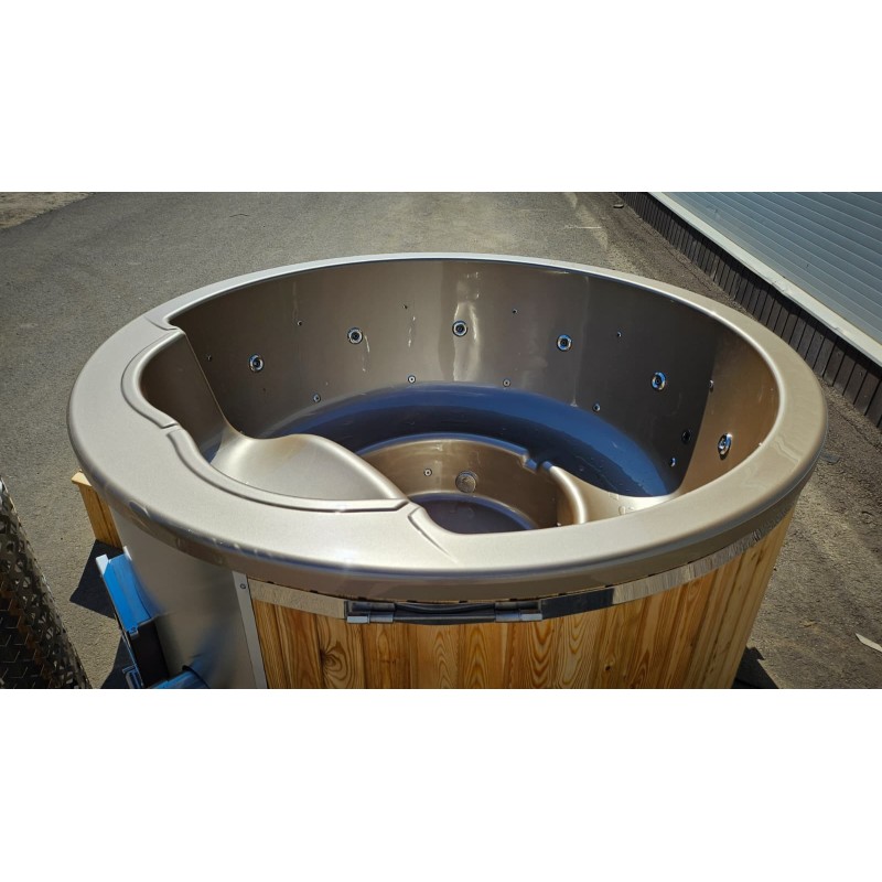 Enjoy a truly effortless hot tub experience with our round fiberglass hot tub, featuring a powerful integrated wood-fired heater. Designed for those who value both comfort and simplicity, this model brings warmth, style, and durability together in one compact package.