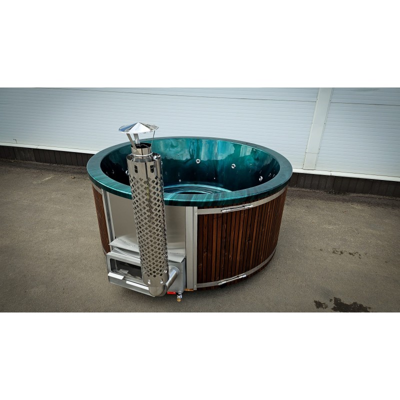 Round Acrylic Hot Tub with External Wood-Fired Heater