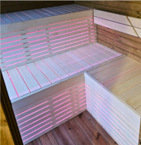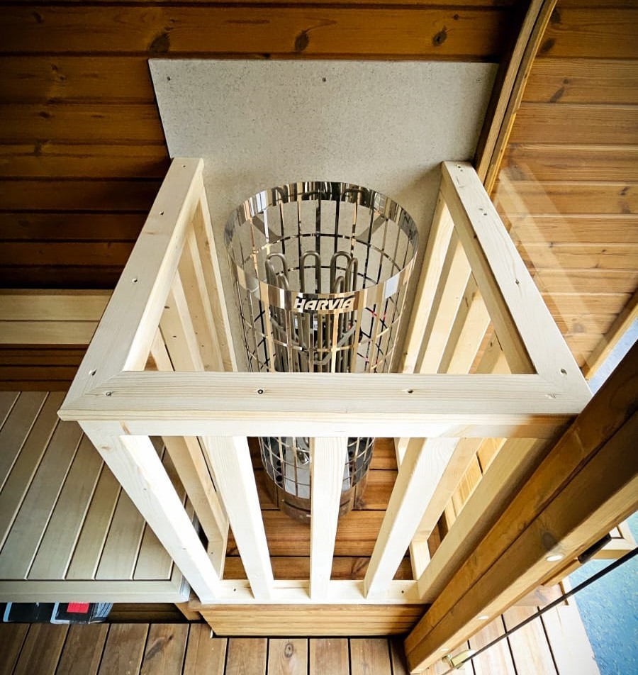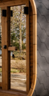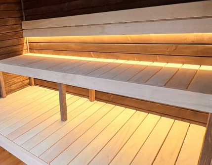 The sauna is made of spruce or thermo wood