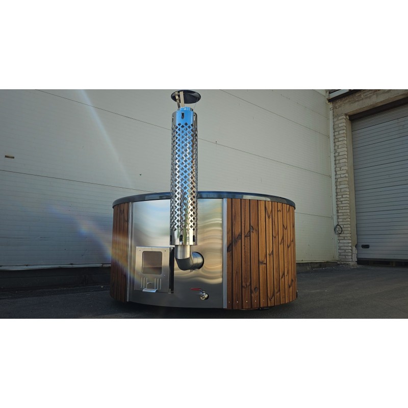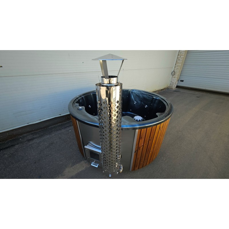 Enjoy a truly effortless hot tub experience with our round fiberglass hot tub, featuring a powerful integrated wood-fired heater. Designed for those who value both comfort and simplicity, this model brings warmth, style, and durability together in one compact package.
