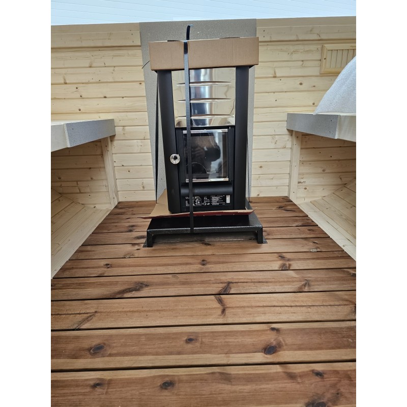 The sauna is made of spruce or thermo wood