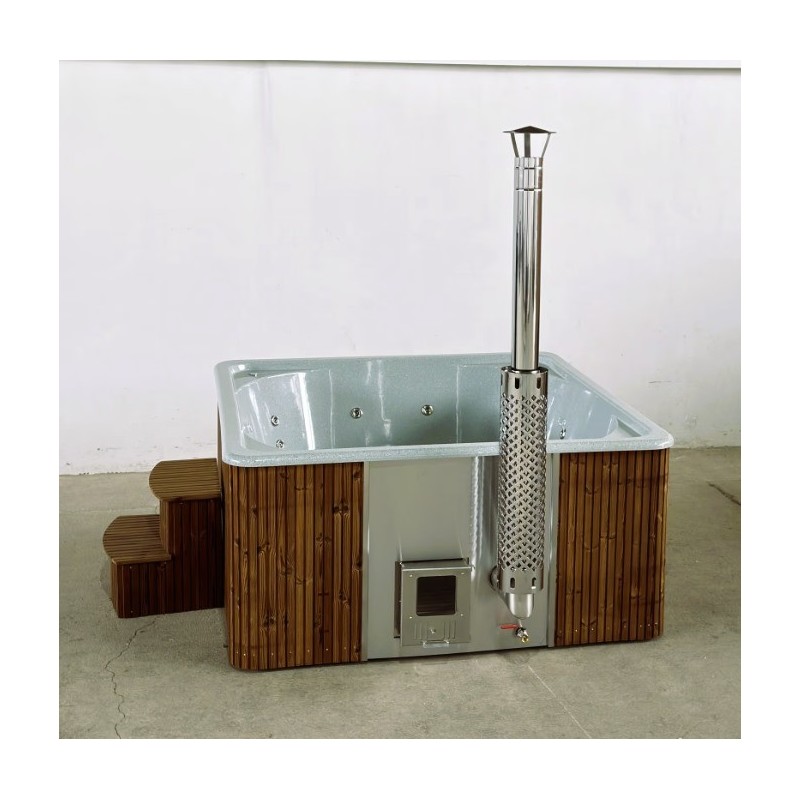 Kvadratinis stiklo pluošto kubilas su integruota krosnele
