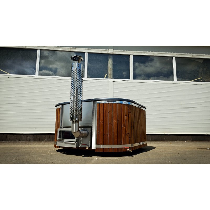 26 kW galingumo krosnelė įmontuota kubilo šone, todėl nereikia papildomos vietos lauke. Vanduo įšyla greitai – vos per 1,5–2 valandas.