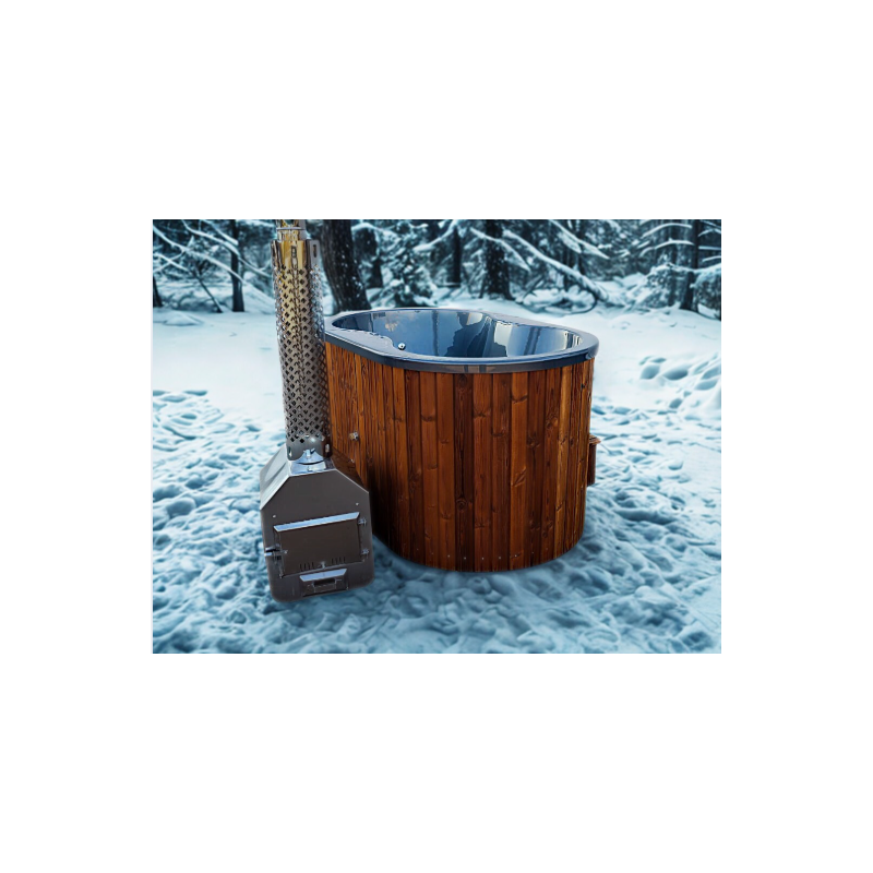 Apvalus stiklo pluošto kubilas su išorine krosnele