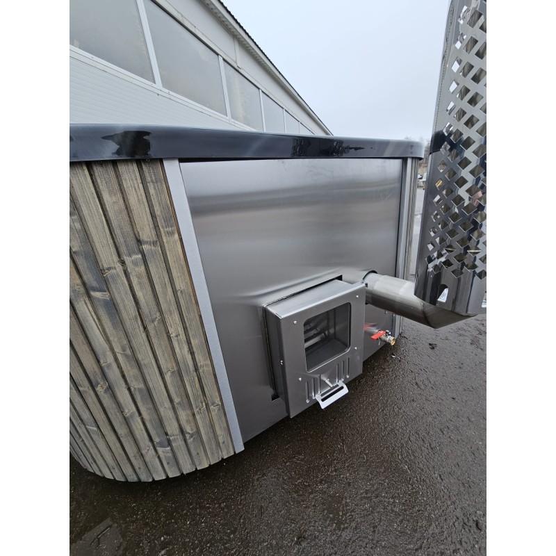 26 kW galingumo krosnelė įmontuota kubilo šone, todėl nereikia papildomos vietos lauke. Vanduo įšyla greitai – vos per 1,5–2 valandas.