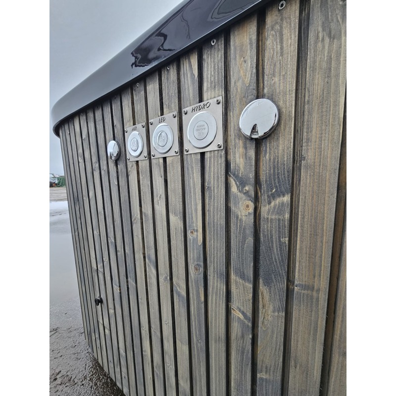 Rinkitės iš kelių elegantiškų vidaus spalvų, o natūralaus termo medžio apdaila suteiks išskirtinį išvaizdos šilumą. Norite dar daugiau? Galite papildomai užsisakyti hidromasažo purkštukus, LED apšvietimą, filtravimo sistemą ir izoliacinį dangtį.